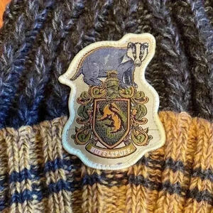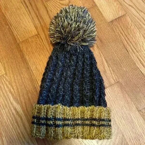 Harry Potter Hufflepuff Knit Beanie With PomPom in Size Youth. Gray and Yellow. Like new condition. Very soft.
