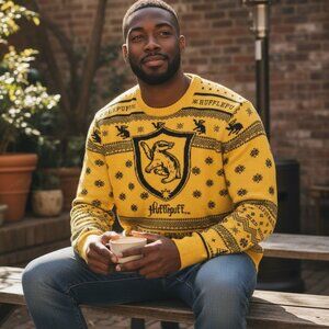 Harry Potter Hufflepuff Ugly Holiday Sweater - BoxLunch Exclusive MENS Sz Med