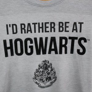 Harry Potter I'd Rather Be at Hogwarts Gray Short Sleeve T-shirt Hi Low Womens M
