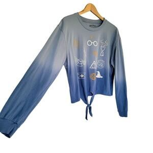 Harry Potter Long Sleeve Cropped Tie-Front Top Women’s Size XL Gradient Blue