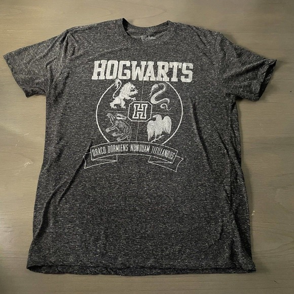 Harry Potter Mens Size Large T-shirt Hogwarts Crest Dark Heather Gray House