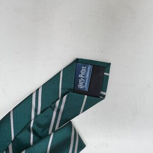 Harry Potter Mens Tie Slytherin Green Gray Striped 100% Microfiber