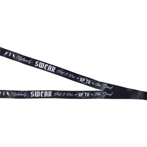 The Harry Potter I Solemnly Swear That I Am Up To No Good Lanyard Badge Id Holder features a lobster claw clasp with clear Id badge holder, and a rubber glasses charm.