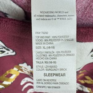 Harry Potter PJ Set 2 Piece Brick Red XL (16-18) Hogwarts Owl Hedwig Girls