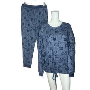 Harry Potter Pajama Set Womens Large Navy Blue Black Wizarding World 2-Piece