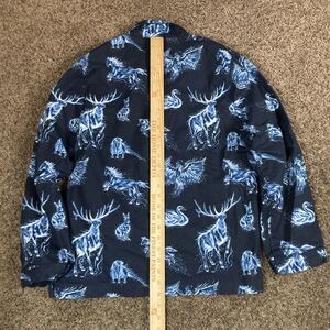This Pottery Barn Teen Harry Potter Patronus Glow in the Dark Flannel PJ Set in size Large is perfect for fans of the Harry Potter series. The set features a vibrant multicolor design with long sleeves, making it ideal for the winter, fall, and spring seasons. The pajama set is unisex and suitable for both men and adults, showcasing a whimsical animal pattern inspired by the Patronus in the Harry Potter universe. Made from soft flannel, this glow-in-the-dark set is a must-have for any Harry Potter enthusiast looking to add a touch of magic to their sleepwear collection.