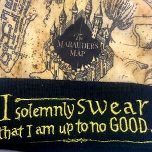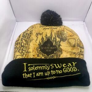 Harry Potter Pom Winter Hat I Solemnly Swear... Marauders Map Gold Black OSFM