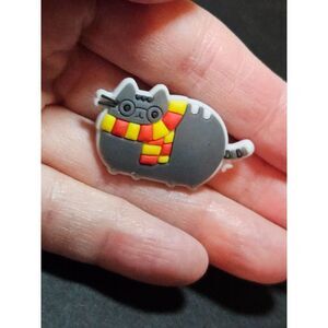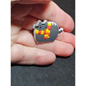 Adorable pin is Pusheen dressed like Harry Potter. Pin itself is a rubbery material.