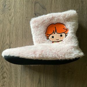 NWOT Harry Potter and Ron Weasley Pink Fuzzy Booties Boots Slippers