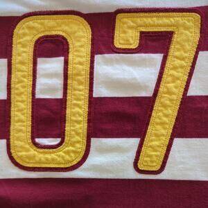 Design: The shirt features red and white horizontal stripes, which are the colors of the Gryffindor house in the Harry Potter series.