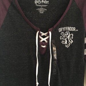 Harry Potter Shirt S Lace Up Gryffindor Embroidered Lion Varsity Quidditch