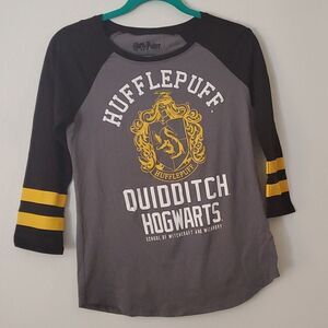 Harry Potter Shirt Womens Small Gray 3/4 Sleeve Hufflepuff Quidditch Hogwarts