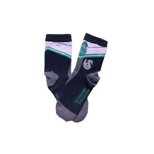 🧦 Slytherin house socks with crest and green-striped details.