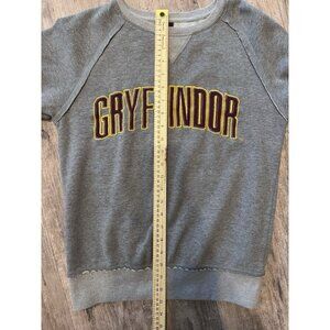 This is a Harry Potter sweatshirt from the Wizarding World at Universal Studios, featuring a Gryffindor theme. The sweatshirt is a size small and is designed as a pullover with long sleeves and a crew neck. Made of polyester and cotton knit fabric, it is lightweight and suitable for all seasons. The sweatshirt also features an embroidered logo accent, making it a perfect addition for fans of the Harry Potter series looking for comfortable and stylish activewear.