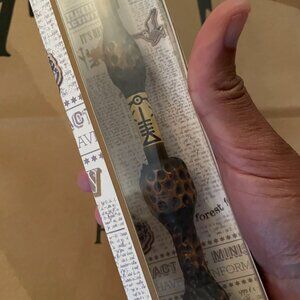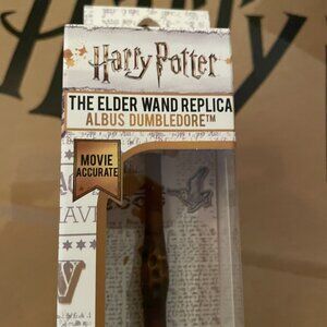 So with this listing you get the wand - THE ALBUS DUMBLEDORE ELDER WAND REPLICA which is movie accurate (I didn't open it or pull it out of box, but it appears to be about 14" when I put a measuring tape to it) AND you get the FULL and unopened Hufflepuff Set, NIB and DIRECTLY FROM MINISO so this is official H.P. and GREAT merch for collectors and fans!!