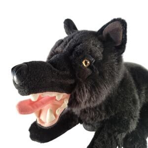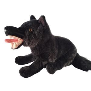 Official Harry Potter black werewolf plush from The Wizarding World at Universal Studios. Measures approx. 17 inches long. Soft body with fierce expression and open mouth detail. Gently used condition.