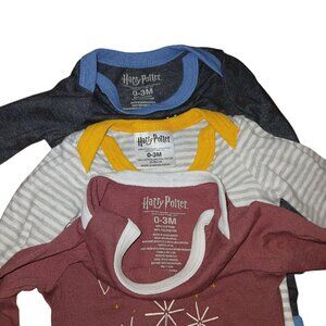 Harry Potter Unisex 0-3 Months Long Sleeve Bodysuit Lot Of 3 Wizarding World Baby
