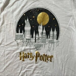 Harry Potter White Short Sleeve Graphic Tee Castle Hogwarts Tshirt Small