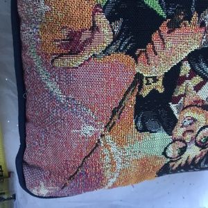 Adorable well made pillow featuring Harry Potter as a boy at Wizard school with a magical wand. It is solid blue on one side and needlepoint print of the scene on the front. Tag is cut and I can't tell brand. Looks to be in great condition. Great way to decorate for any Harry Potter fan.