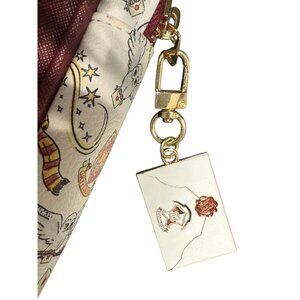 Set includes a key chain, a card wallet and a mini backpack. Perfect for gifting or your next Universal Studios vacation. This Harry Potter mini backpack offers a functional and stylish option for fans. Featuring a whimsical owl and Hogwarts letter print, it complements casual outings or events with a touch of fandom. Its compact size and durable faux leather material make it a practical accessory for carrying essentials.