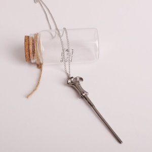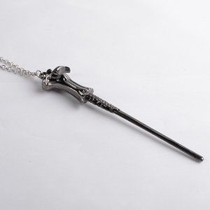 Silver metal Voldemort Wand Necklace, on a silver metal chain, adjustable.