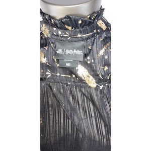 Harry Potter Women's Sheer Black Button-Up Blouse with Gold Feathers Size M