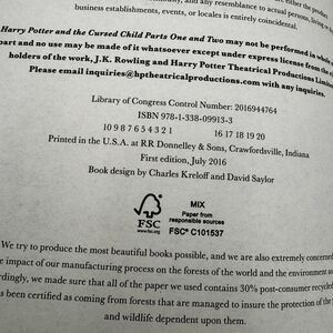 This product is a first edition, first printing hardcover of "Harry Potter and the Cursed Child" by J.K. Rowling. Published by Arthur A. Levine Books in 2016, this novel is part of the Harry Potter series and is intended for a wide range of audiences, including young adults and adults. The book falls under the genres of fiction, fantasy, and magic, making it a captivating read for fans of the series. It also features a dust jacket and is a special edition with limited availability.