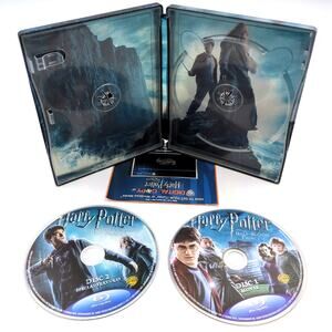 Harry Potter and the Half Blood Prince Steelbook Blu-ray 2 Disc Set. This steelbook version is out of print. Please see pictures for details. The blu-ray discs look good. The steelbook overall looks very glood with some small blemishes. One of the plastic disc holders is missing a nub as shown in picture.