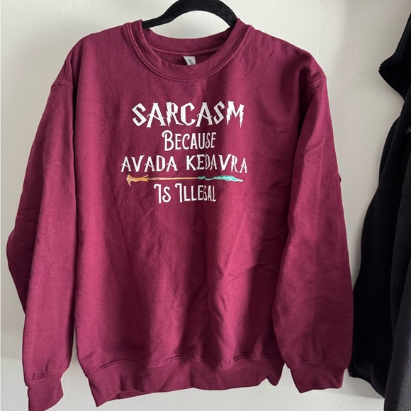 Size small pullover with Harry Potter reference. “Sarcasm. Because Avada Kadavra is illegal”. Never worn.