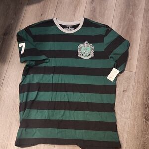 Stylish black and green striped men's shirt featuring a bold design. Perfect for casual outings.Size Xlarge new with Tags