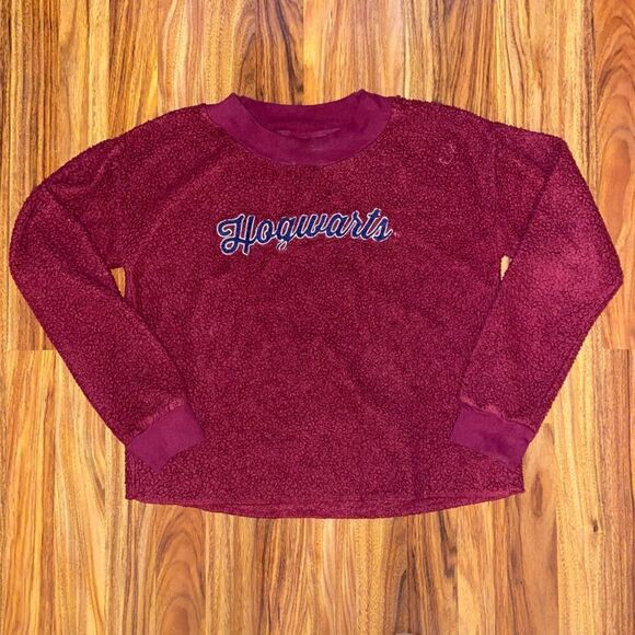 Harry Potter Maroon Fleece Crew Neck Sweatshirt Cropped Hogwarts