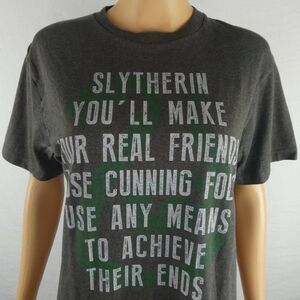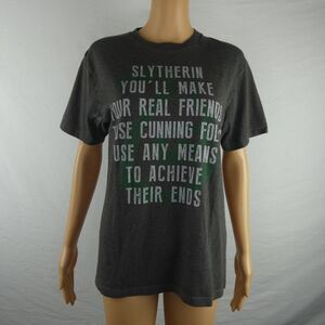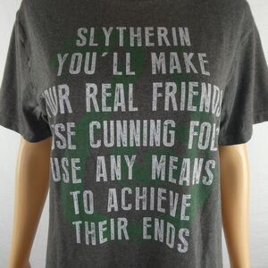 Harry Potter Slytherin Slogan Graphic T Shirt Tee Grey Real Friends Cunning Ends