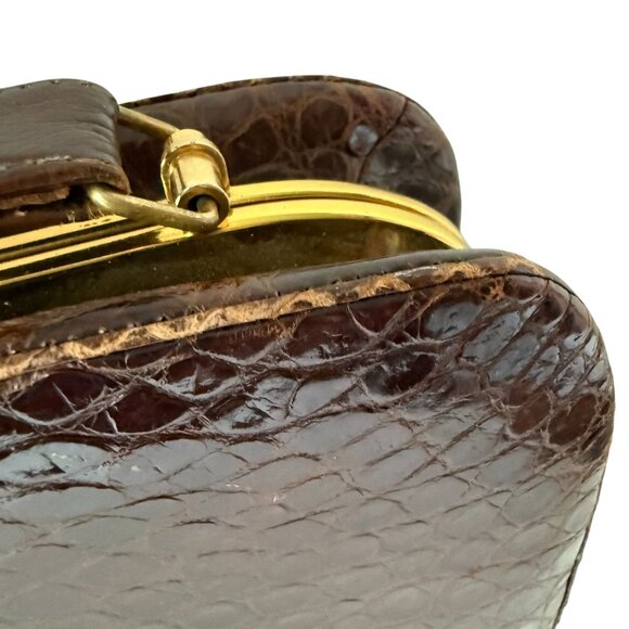 Harry Revits Vintage Leather Gold Metallic Trim Alligator Croc Embossed Handbag Women's Brown