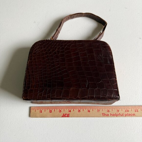 Harry Revits Vintage Leather Alligator Embossed Handbag Women's Brown