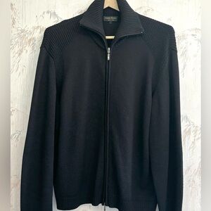 Harry Rosen Zip Up Black Merino Wool Sweater Made in Italy Large