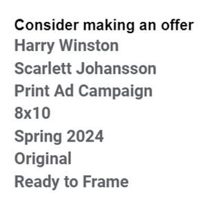 Harry Winston & Scarlett Johansson Print Ad Campaign Spring 2024 Original Ready to Frame 8x10