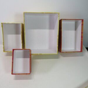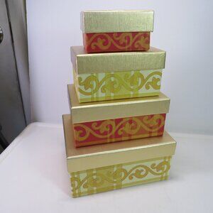 Harry and David Gift Boxes set of 4 Gold & Warm Red Swirl w metallic lids