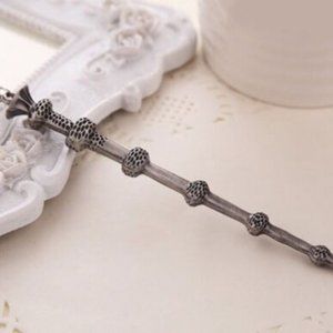 Silver metal Harry Potter Wand Necklace, on a silver metal chain, adjustable.