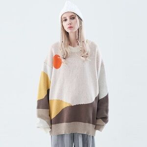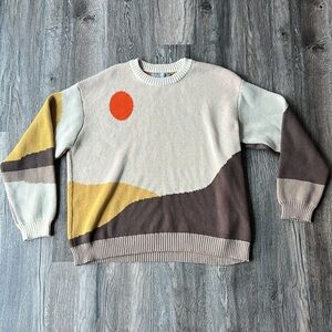 Harsh and Cruel Sweater Mountain Landscape Crew Neck Sweater Size Medium