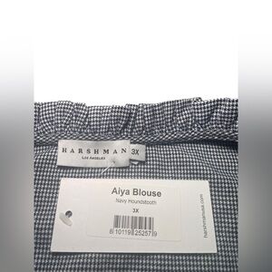 Harshman Aiya Blouse Navy Houndstooth Check Plus 3X NWT Cotton Wool