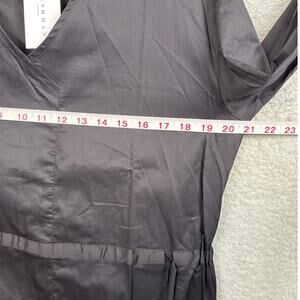 Harshman Belinda A-Line Midi Dress Black Brushed Cotton Draw String Waist NWT M