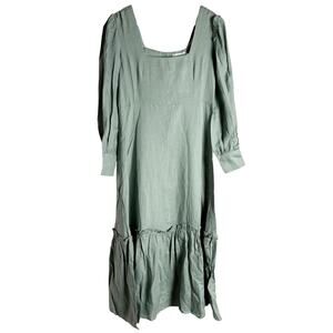 Harshman Bloom Sage Green Long Sleeve Square Neck Flounce Midi Dress Size S