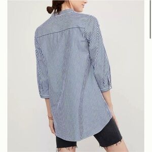 Excellent condition. Blue/white striped. Breathable cotton poplin pullover tunic top. Relaxed fit. 1/2 Button front. 3/4 length sleeves.