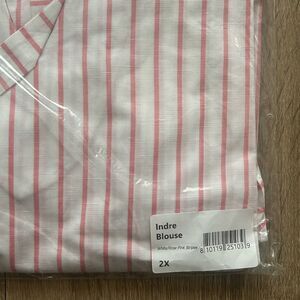 Harshman Indre White Pink Striped Cutout Long Sleeve Cotton Blouse Size 2X