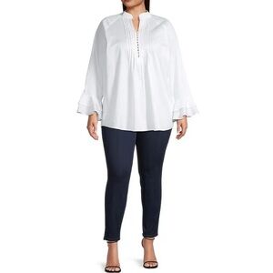 Harshman Nagisa Pintuck Ruffle-Cuff Cotton Blouse in white Size 2X