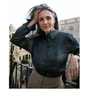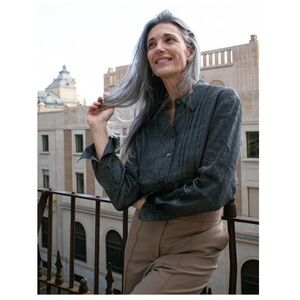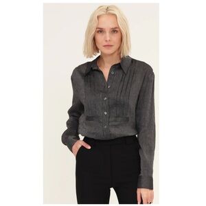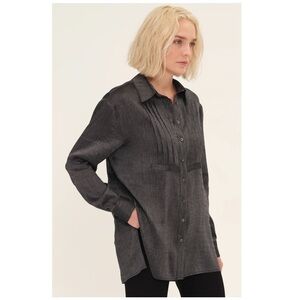 NWT Harshman Silk & Linen Quiet Luxury Drea Tunic Top Charcoal Stripes. Size XS.