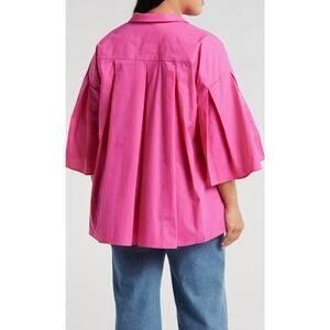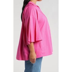 Harshman Sz 1X Maureen Tunic Cotton Poplin Top in Fuchsia Quiet Luxury NEW!