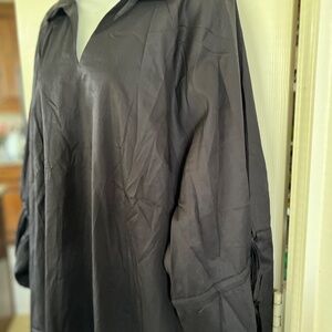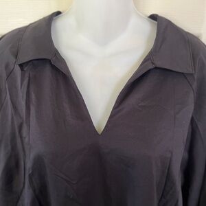Featuring a shift silhouette, this minimalist style showcases a point collar and voluminous balloon sleeves with an adjustable drawstring. Point collar Balloon sleeves Pullover style 100% cotton