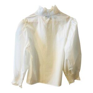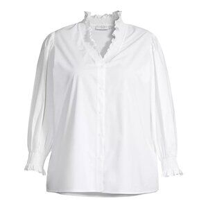 Harshman White Bonnie Ruffle Cotton Poplin Button Up Blouse Size Small