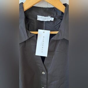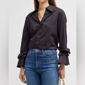 Harshman Women's Size 1X Selina Ruffle-Trim Button Front Cotton Shirt Black